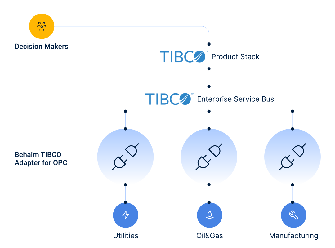 Adaptér TIBCO pro OPC společnosti Behaim umožňuje výměnu dat v reálném čase mezi servery OPC a aplikacemi TIBCO ESB. Poskytuje služby request/response pro manipulaci s daty tagů a odběry oznámení a služby publish pro publikování oznámení o změnách tagů.